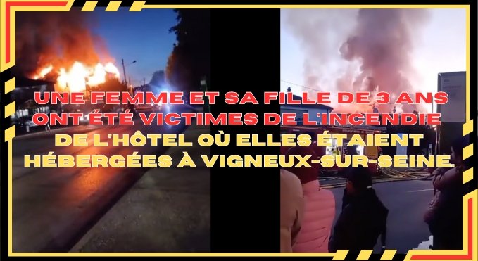 une femme et sa fille de 3 ans ont été victimes de l'incendie de l'hôtel où elles étaient hébergées à Vigneux-sur-Seine.